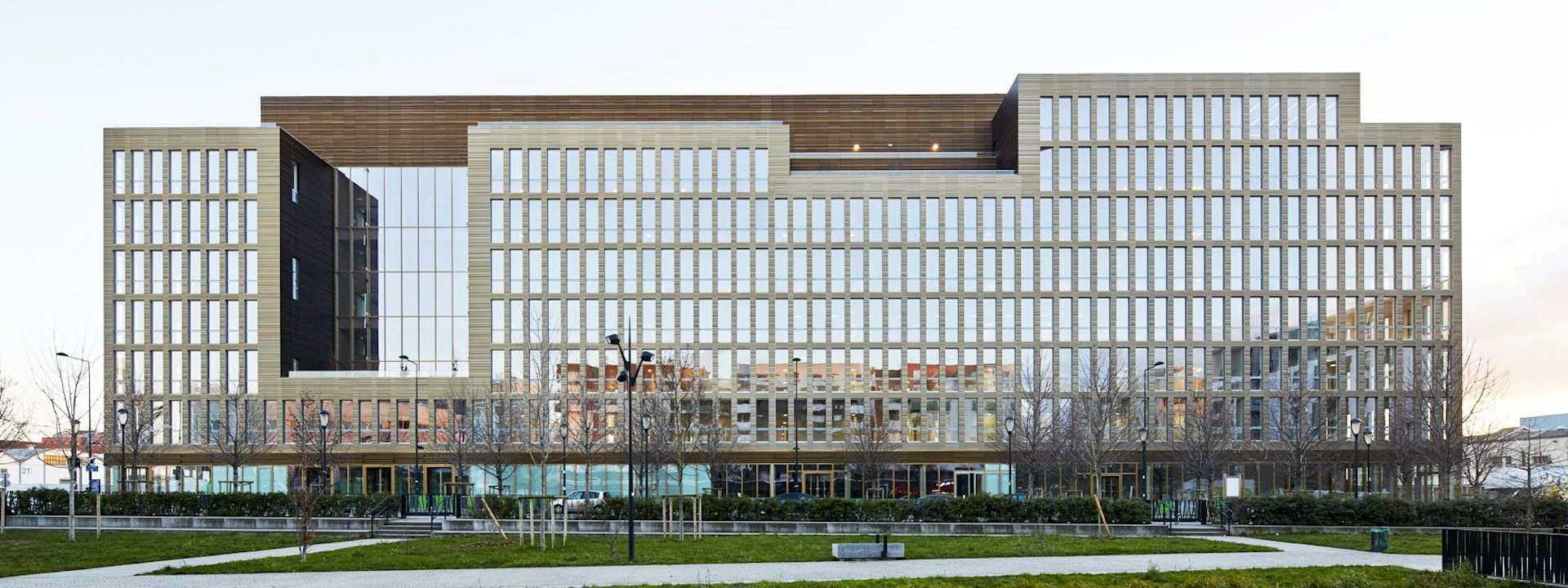 Construction d'un immeuble à la structure mixte bois-béton bénéficiant d'un vaste atrium central.